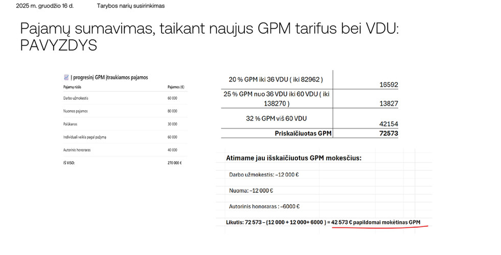 Nuo 2026 m. sausio 1 d. įsigalios plati mokesčių reforma, apimanti gyventojų pajamų mokestį (GPM), individualios veiklos apmokestinimą, autorinius honorarus, taip pat nekilnojamojo turto ir pelno mokesčius. Esminis pokytis – nauja progresyvaus GPM sistema, susieta su vidutiniu darbo užmokesčiu (VDU): pajamoms bus taikomi 15 %, 20 %, 25 % ir 32 % tarifai, o skirtingų rūšių pajamos (darbo užmokestis, autoriniai honorarai, individuali veikla ir kt.) bus sumuojamos ir apmokestinamos bendrai. Tai reiškia, kad didesnes ir mišrias pajamas gaunantys asmenys dažniau pateks į aukštesnius tarifų „laiptelius“, o galutinis mokėtinas GPM bus nustatomas metų pabaigoje, įvertinus visas pajamas.