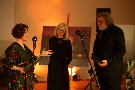 Lietuvos dailininkų sąjungos Klaipėdos skyriaus pirmininkė Neringa Poškutė-Jukumienė, perdavė sveikinimus visos Lietuvos dailininkų sąjungos bendruomenės ir pirmininkės Eglės Gandos Bogdanienės vardu.